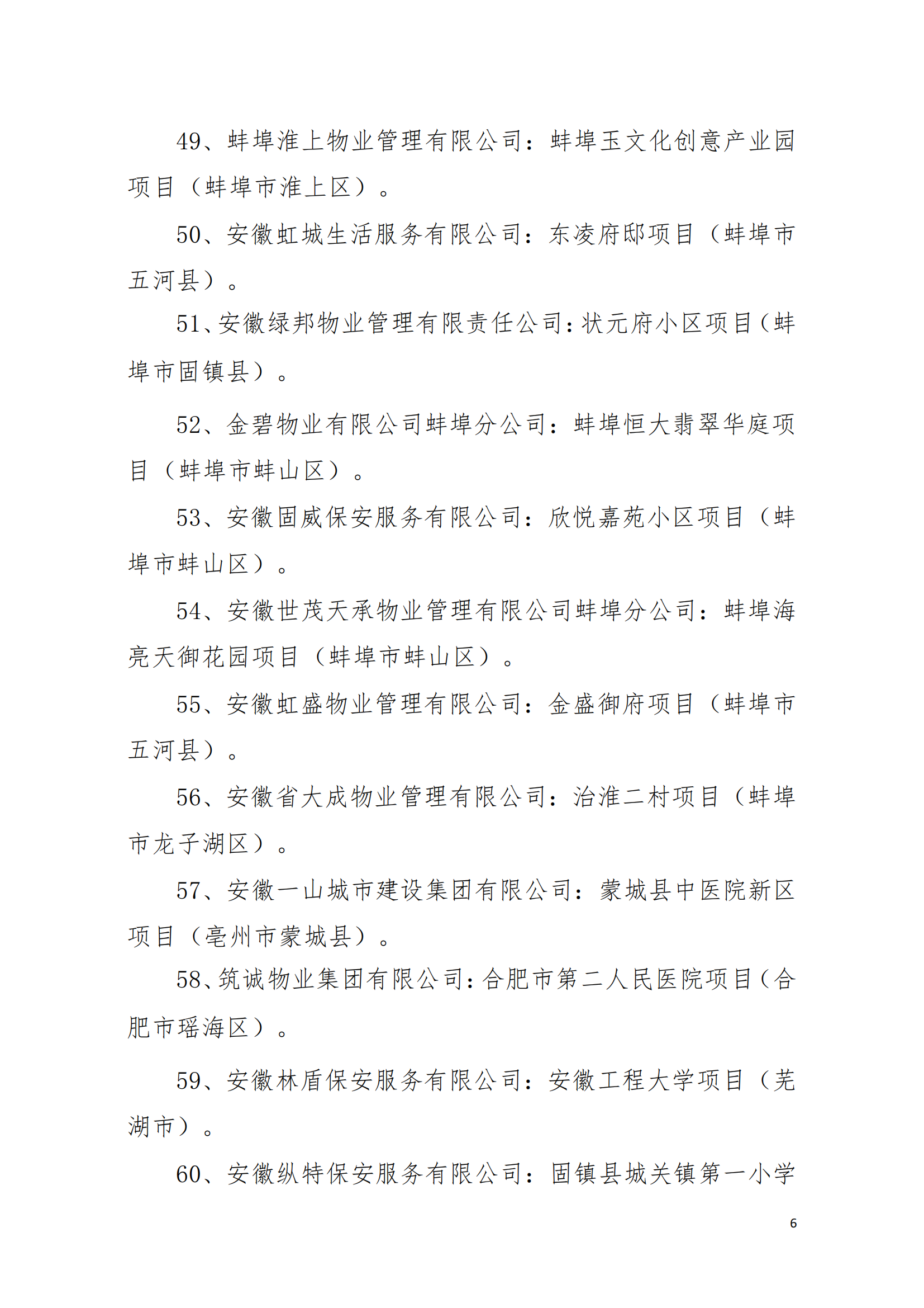 54、安徽世茂天承物业管理有限公司蚌埠分公司:蚌埠海亮天御花园项目(蚌埠市蚌山区)。