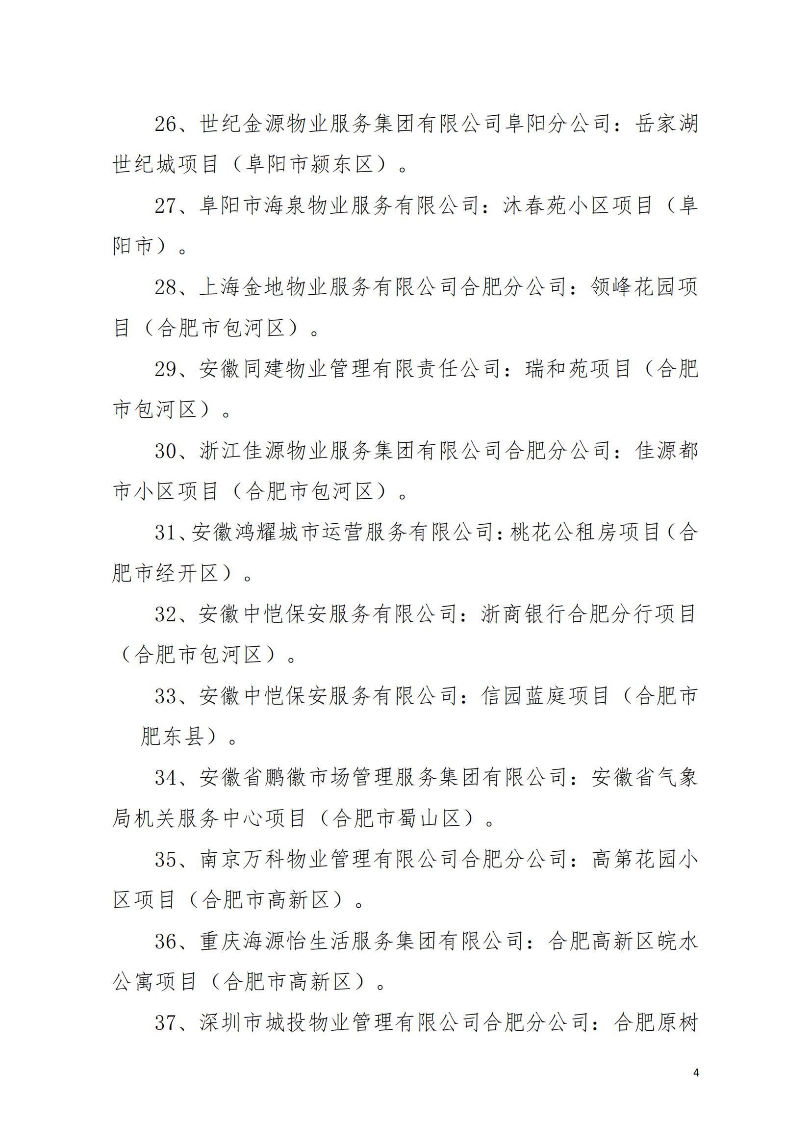 30、浙江佳源物业服务集团有限公司合肥分公司:佳源都市小区项目(合肥市包河区)。